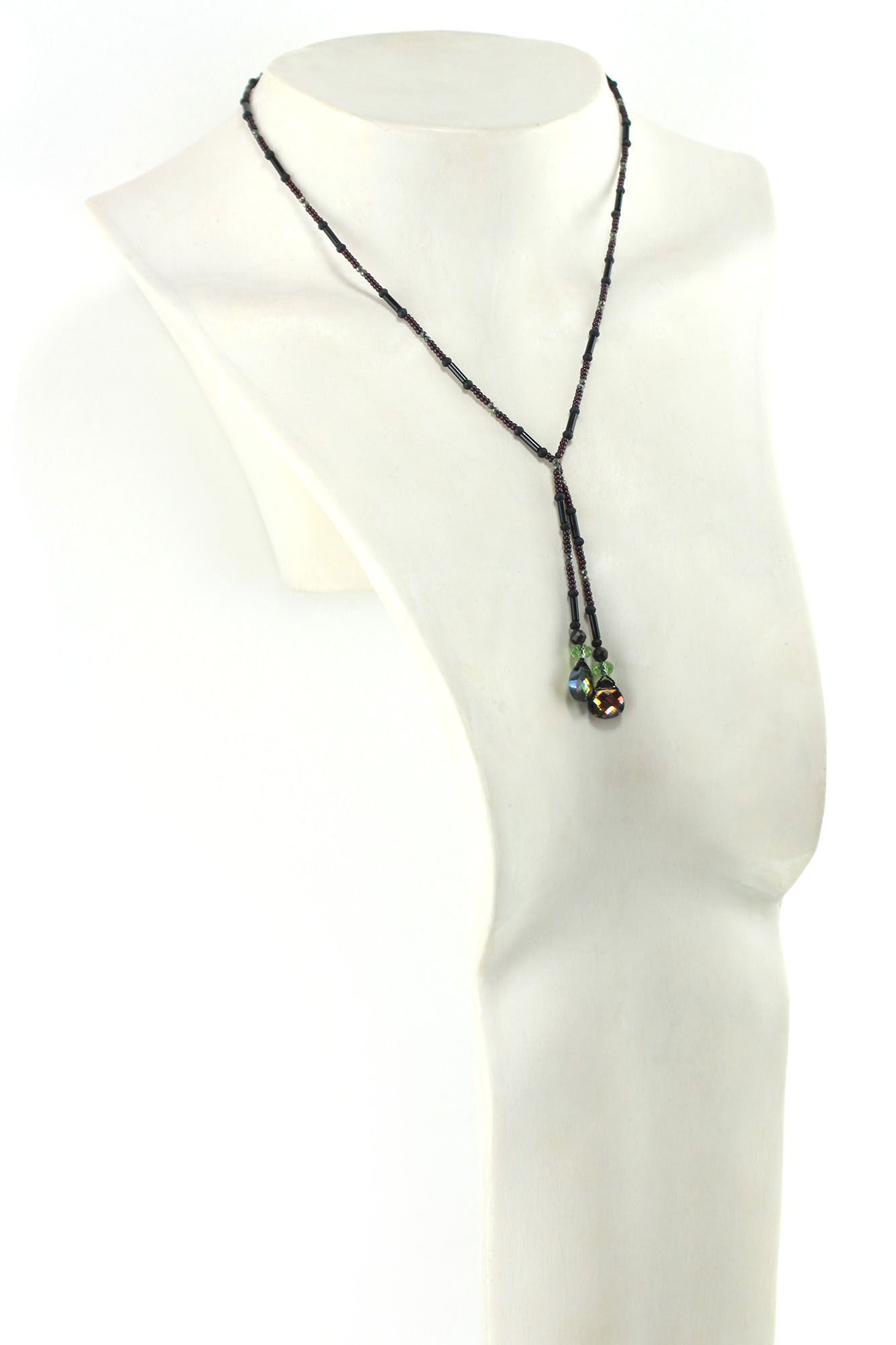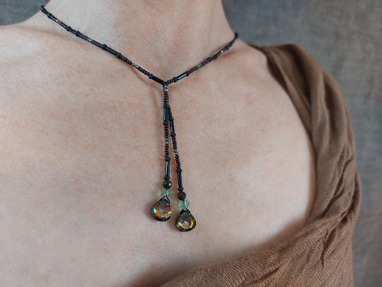 Collier en perles, du noir aux reflets verts – Un bijou raffiné et envoûtant