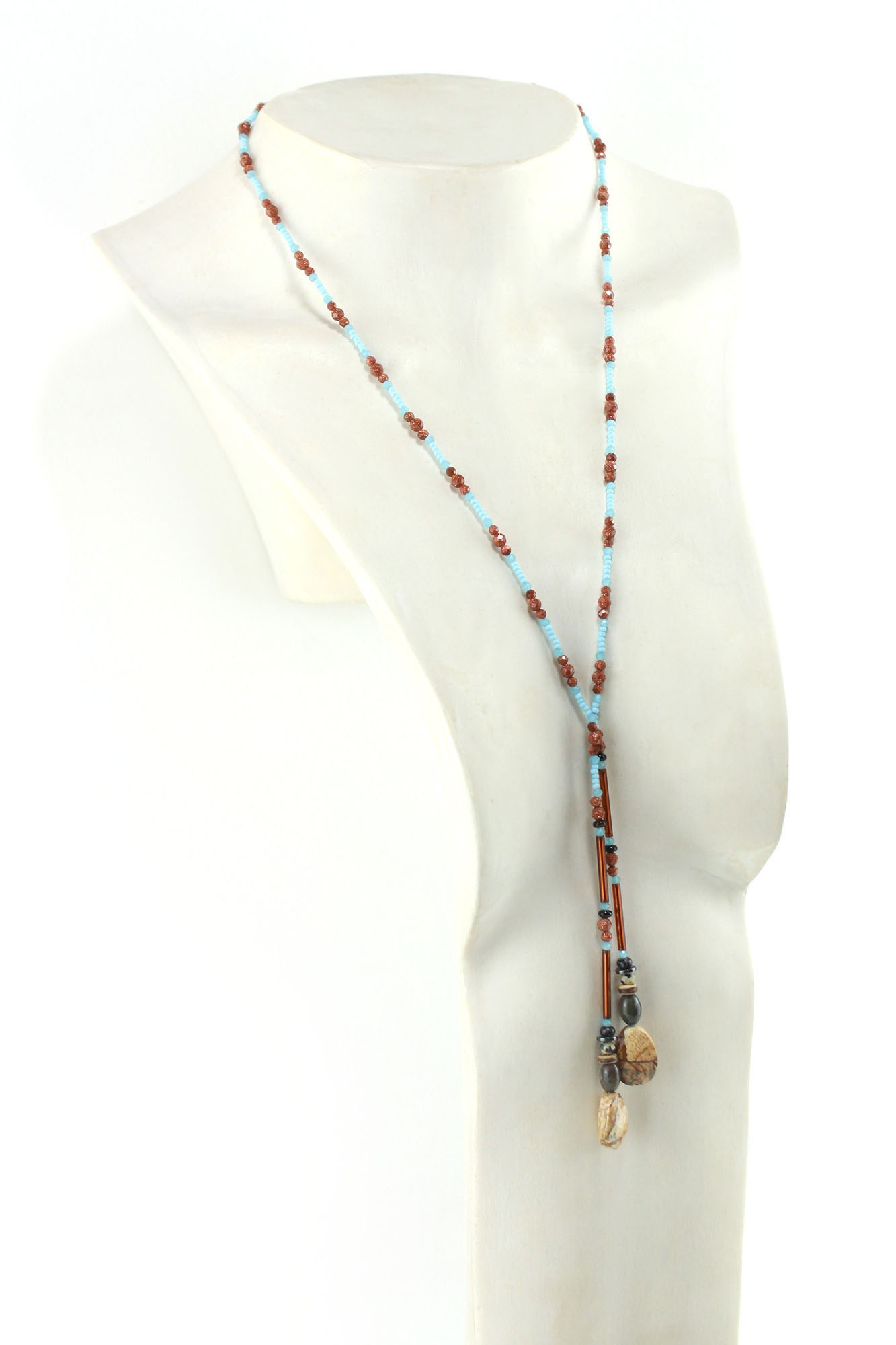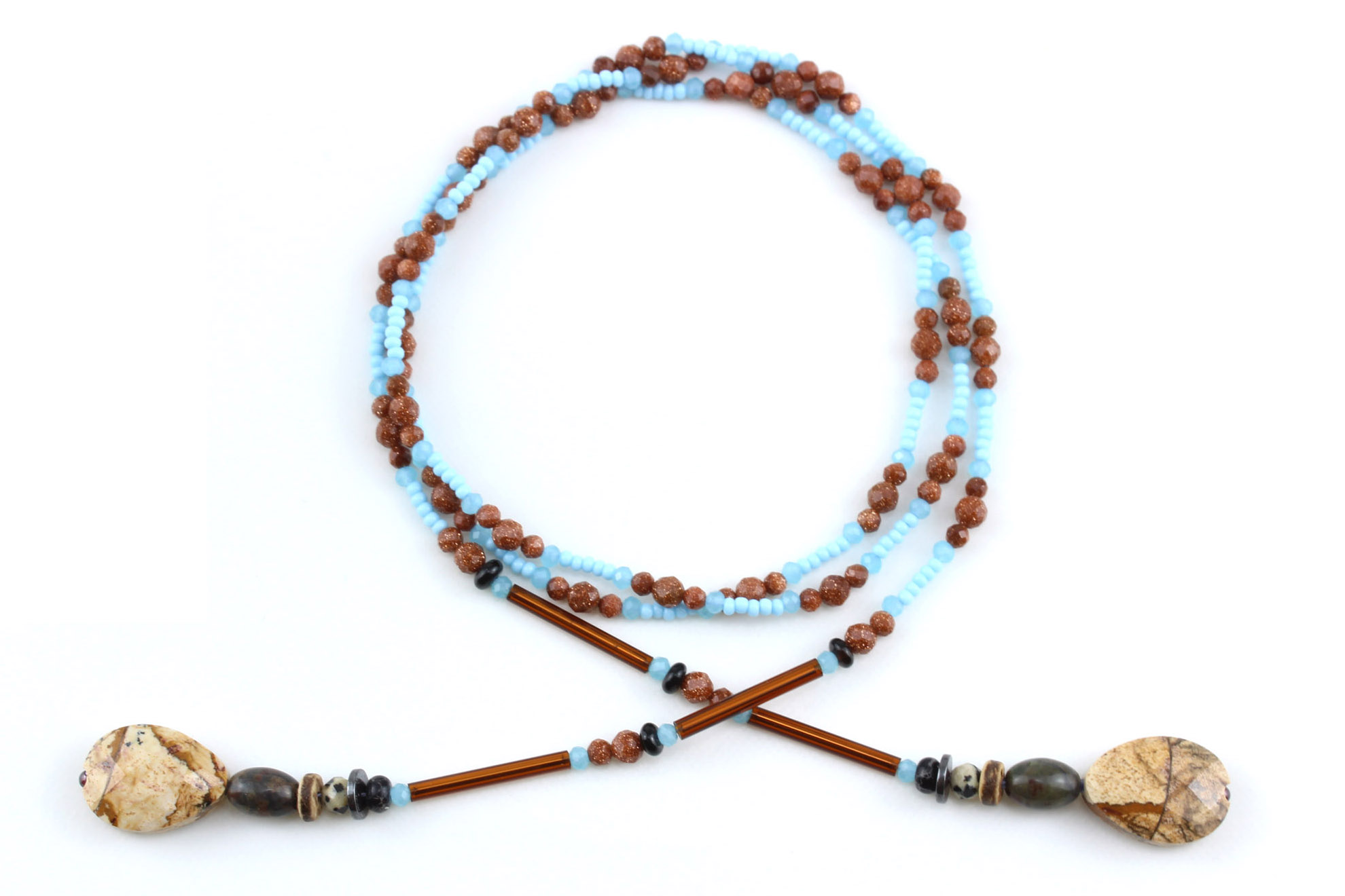 Lariat bleu et orange en perles de Jaspe – Harmonie de contrastes et d’éclat