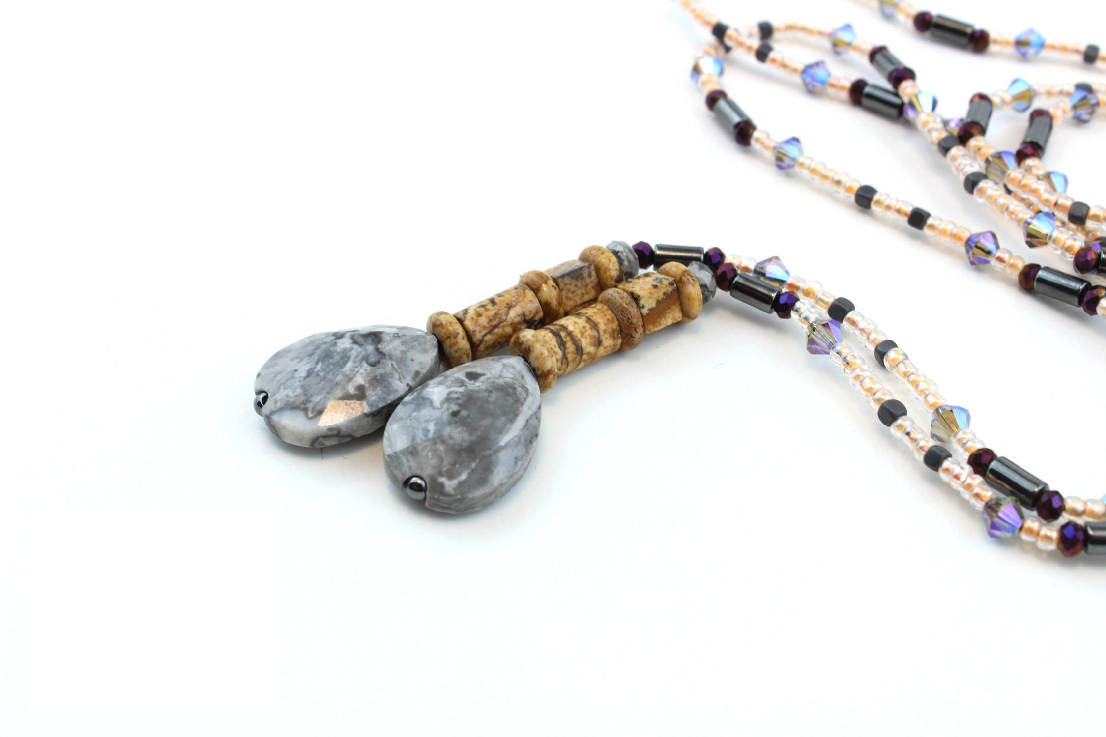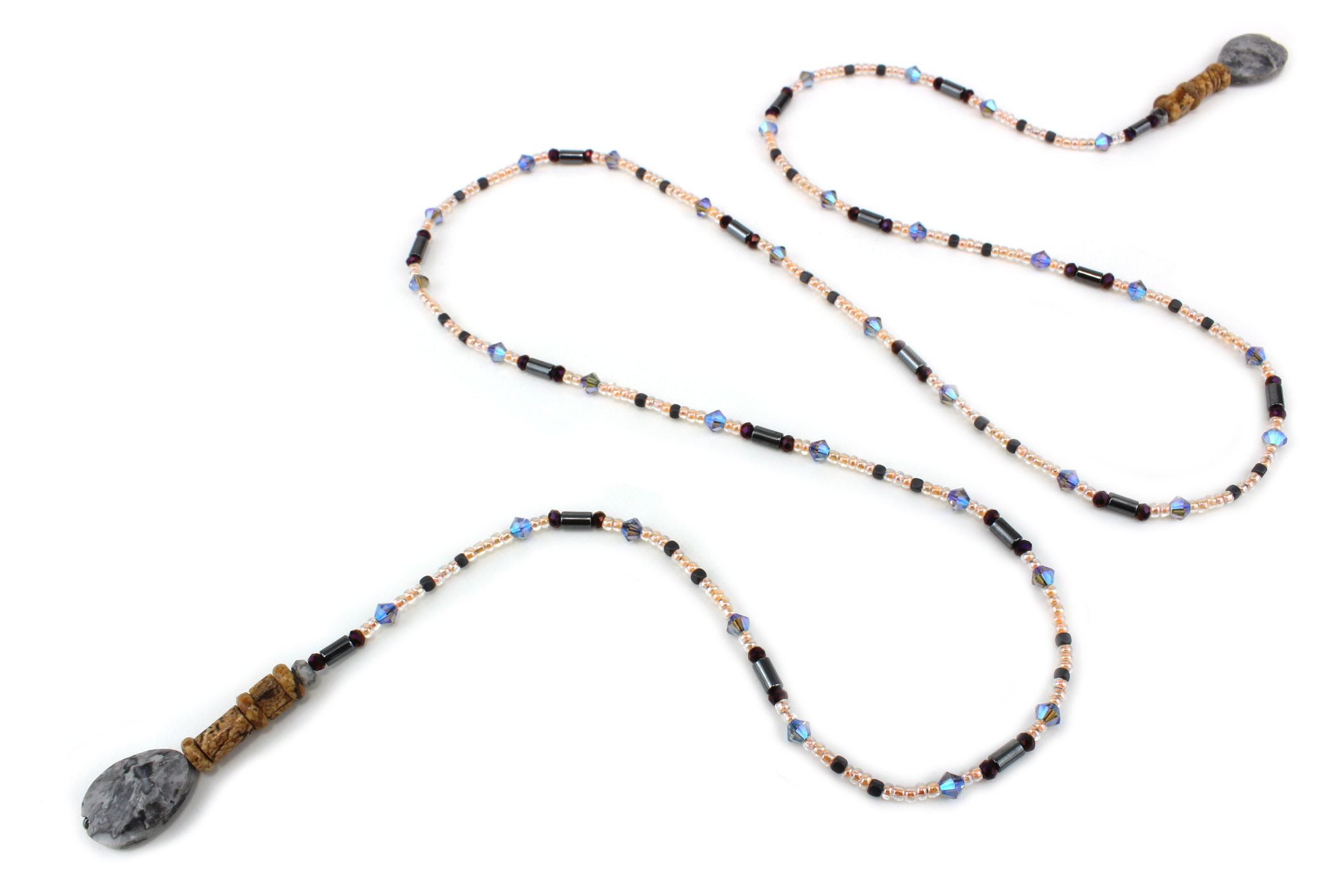 Chaque lariat est conçu avec des finitions impeccables : aucun nœud visible, des perles minutieusement sélectionnées une à une pour l’harmonie des lignes, et un système à nouer innovant qui en fait un bijou unique sur le marché.